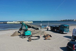 Ett spännande projekt med viss komplexitet där fastlandets VA-ledningar kopplades samman med kallbadhuset som ligger ca 300 m ute i havet.